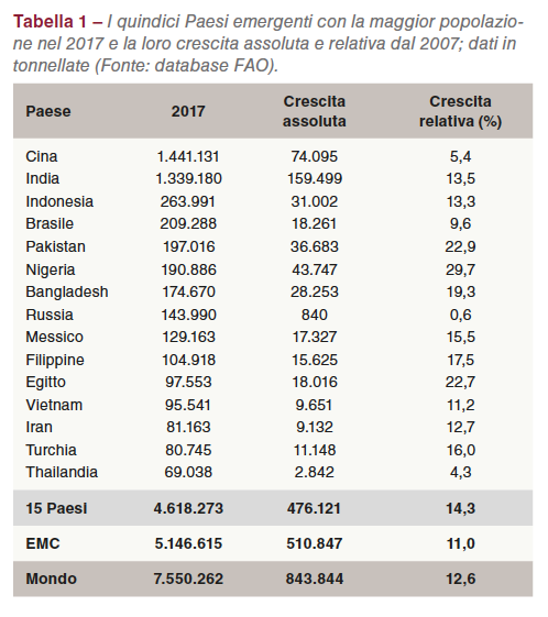 In questo lavoro verrà utilizzato un elenco di 37 Paesi dei mercati emergenti (EMC), basato sulle classificazioni della Banca mondiale, del Fondo Monetario Internazionale e dalla FAO.[1] Nel 2017 essi hanno condiviso il 68,2% della popolazione mondiale, il 68,1% dell’inventario mondiale delle galline ovaiole e il 73,4% della produzione mondiale di uova.