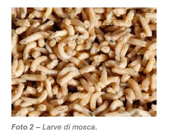 Le larve sono apode (Figura 2), cioè prive di zampe, sono bianche e vivono profondamente all’interno di materiale organico con umidità intorno al 60-70%, dove avviene la trasformazione da larva a pupa e infine a mosca. Il processo di trasformazione è accompagnato dalla risalita verso la superficie, dove la mosca può uscire una volta che si è aperto il bozzolo. A due soli giorni dall’uscita dal bozzolo la mosca è già in grado di accoppiarsi: la femmina una volta sola, il maschio più volte. La femmina con un solo accoppiamento è in grado di deporre uova per tutta la durata della sua vita (otto/dieci giorni) e ha una capacità riproduttiva elevatissima: può deporre centinaia di volte, fino a raggiungere anche mille uova.