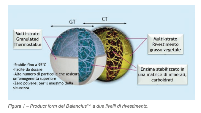 La product form del Balancius™, che combina due tipi di copertura (GT e CT), assicura un’ottima omogeneità e zero polvere: per il massimo della sicurezza, eccellente scorrevolezza e miscelabilità. Prove di stabilità alla pellettatura hanno mostrato ottime performance anche ad alte temperature fino a 95 °C per esposizione al calore fino a 210 secondi (Figura 1).