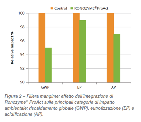 Da una recente pubblicazione di Adam Smith, responsabile enzimi EMEA per DSM, è stato preso in considerazione non solo l’effetto della proteasi sulla riduzione del costo alimentare e sul miglioramento delle performance, ma anche sulla riduzione dell’impatto ambientale, oggi argomento di grande interesse.