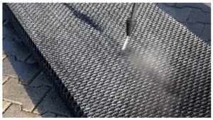 La speciale disposizione delle superfici solide e delle strutture a rete (design brevettato) assicura una distribuzione ideale dell’acqua attraverso il pannello con una minore perdita di pressione rispetto ai pannelli in carta. Ciò consente una corretta bagnatura e minori spruzzi, con conseguente capacità di raffrescamento altamente efficiente nelle regioni a clima caldo. L’uso di fogli di polimeri ad alta resistenza in combinazione con la saldatura termica garantisce la massima stabilità e una lunga durata.Inoltre, i pannelli in plastica possono essere facilmente puliti con un’idropulitrice senza danneggiarli e questo aumenta la durata di vita del pannello in plastica rispetto ai pannelli in carta. Inoltre, l’uso di additivi stabilizzanti garantisce un’eccezionale resistenza ai raggi UV per anni. Infine si sottolinea che i requisiti per la qualità dell’acqua sono molto bassi.