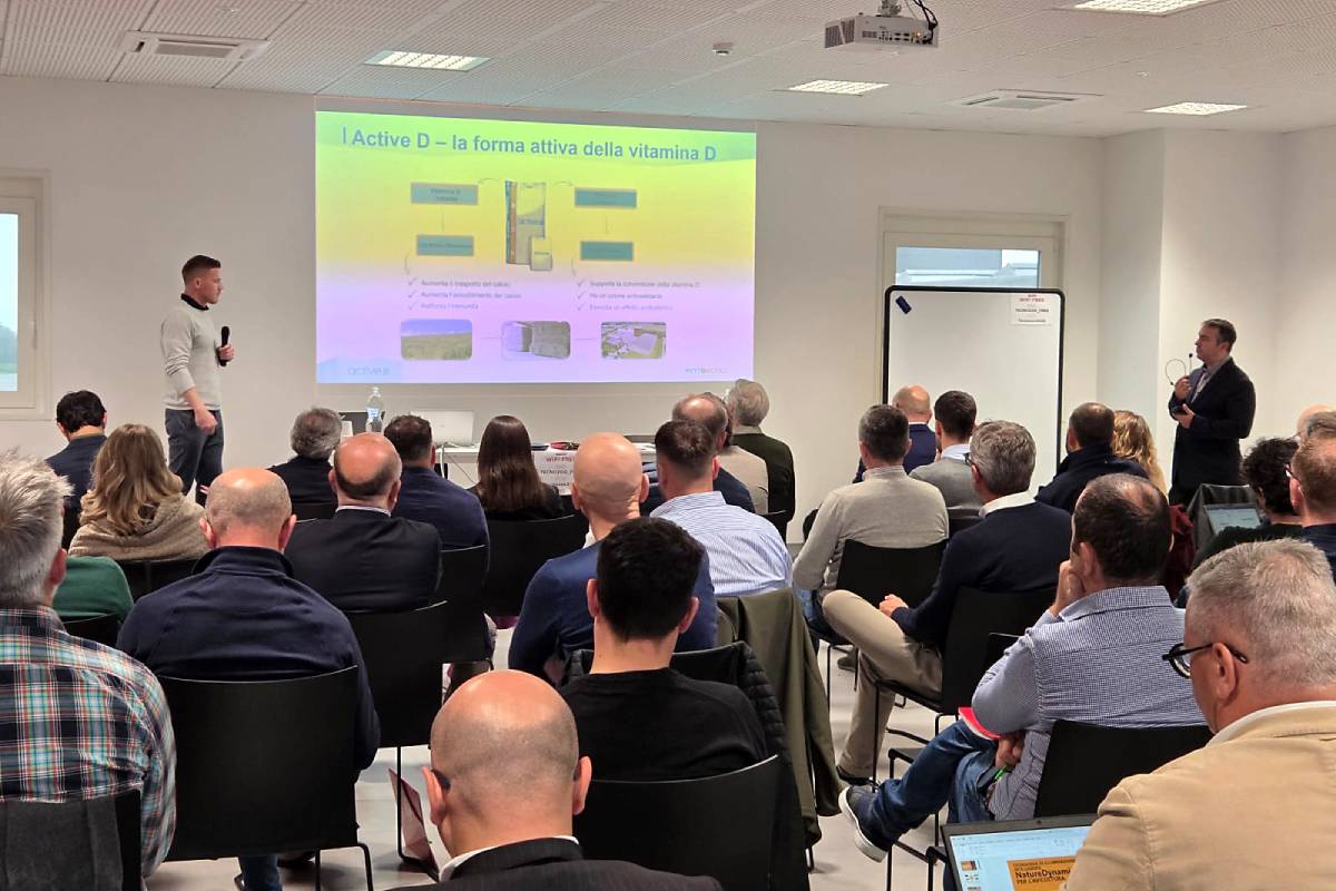 Diversi i temi trattati durante la presentazione: primo tra questi, il ruolo della vitamina D3 attivata nel metabolismo del calcio, nel rafforzamento del sistema immunitario e negli effetti antiossidante ed antibatterico. Questo prodotto, Active D, è costituito da una miscela di piante selezionate (tra cui l’avena dorata) che contengono la forma attiva della vitamina D (calcitriolo glicosidato 1,25-OH-D3); è dimostrato come questo composto bypassi gli organi deputati al metabolismo endogeno della vitamina D3 (fegato e reni), aumentando così l’assorbimento del calcio dall’intestino, il rilascio dello stesso dalle ossa e il suo riassorbimento a livello renale, anche in condizioni di problematiche organiche croniche. Tramite la descrizione di diversi studi sperimentali a carico di gruppi di ovaiole e riproduttori, ne è stato consigliato un utilizzo continuativo in quest’ultima categoria, lungo tutto il ciclo di vita, in aggiunta ai normali livelli di vitamina D3, con evidenza di miglioramento diretto sulla qualità del guscio delle uova e, indirettamente, sulla qualità dell’embrione e della prole generata. Nelle ovaiole commerciali è stato indicato un uso più mirato, soprattutto per quanto riguarda le fasi finali del ciclo, a partire dalla sessantesima settimana. Un punto interessante, emerso durante la presentazione, riguarda il vantaggio nell’utilizzo dello stesso in altre due fasi: durante lo svezzamento, per rinforzare ulteriormente l’apparato scheletrico degli animali, e durante la partenza del ciclo di deposizione, per avvantaggiare le fasi finali di accrescimento e di formazione dell’osso midollare (16-20 settimane).