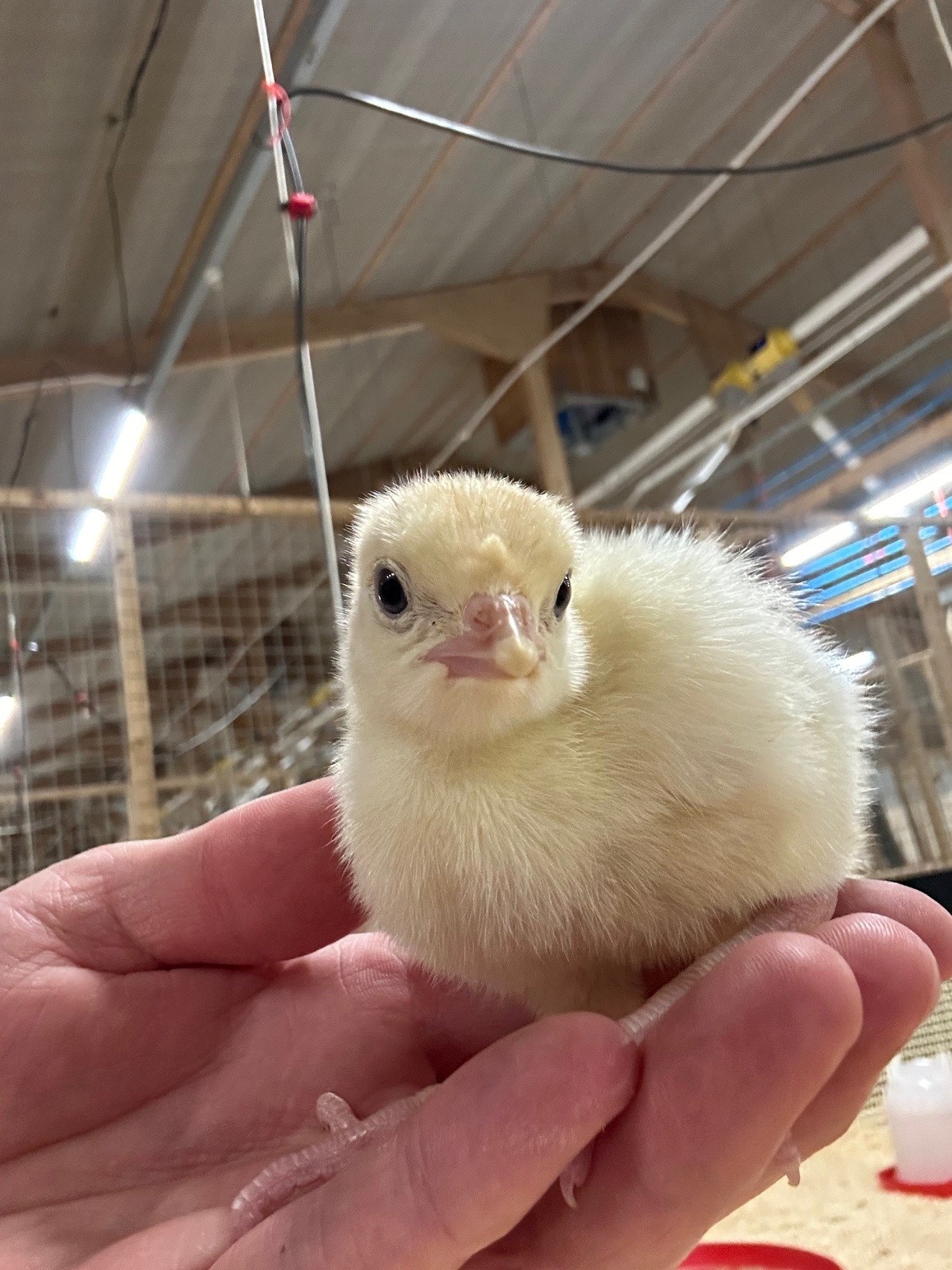 Maneggiando ogni pulcino con cura, tastare delicatamente il gozzo di ciascun tacchinotto usando il pollice e l’indice.
