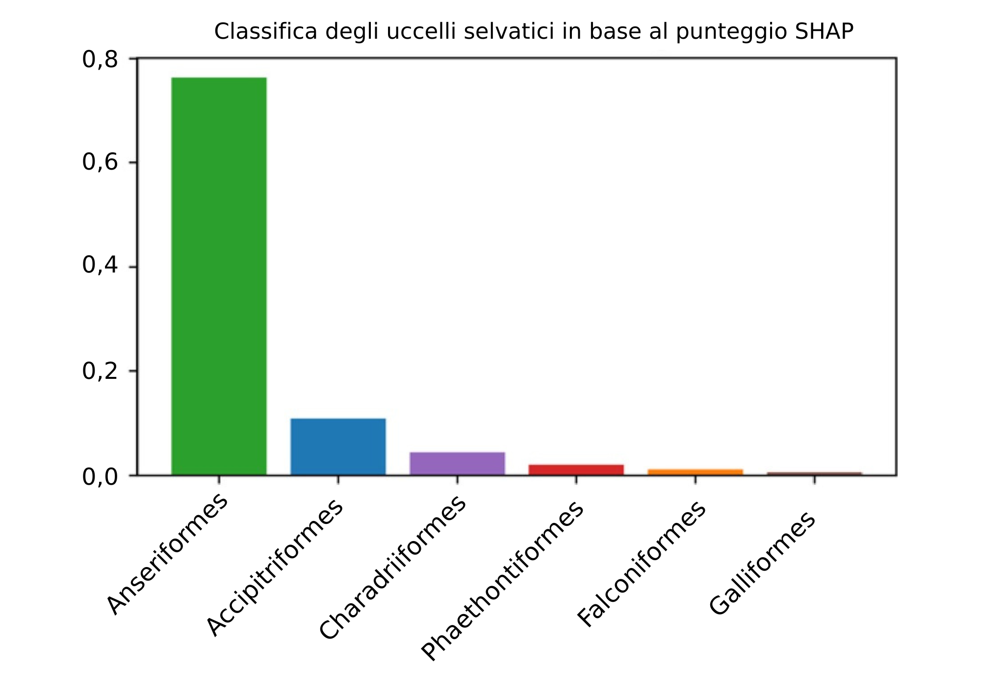 Figura 1 – Uccelli selvatici classificati in base al punteggio SHAP