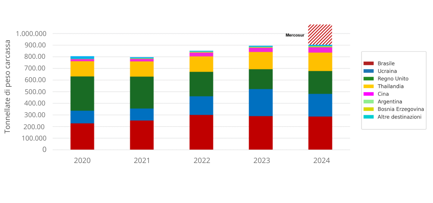 Nota: dati parziali provvisori o stimati. Prevalentemente produzione interna lorda. *) Solo carne di pollo e tacchino.