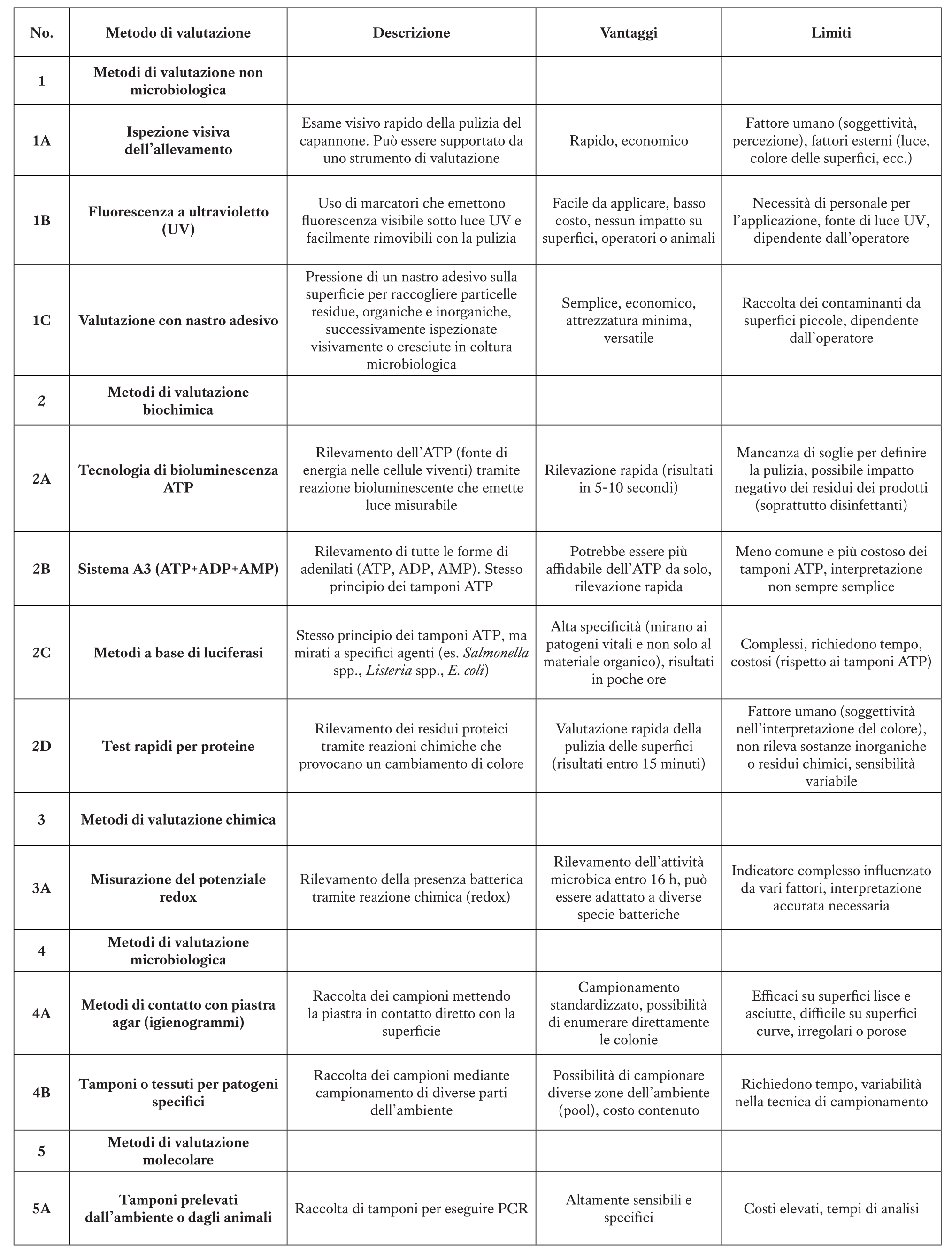 Questi metodi rappresentano ciò che è attualmente disponibile e pratico per valutare l’efficacia di P&D secondo la letteratura scientifica. La validazione sul campo, tuttavia, rappresenta una sfida differente: gli allevamenti commerciali sono ambienti dinamici in cui differenze strutturali (ad esempio pavimenti rivestiti o non rivestiti nel capannone), routine gestionali e variabilità quotidiana possono influenzare i risultati della valutazione. Per questo motivo, quando si valuta la P&D, si raccomanda un approccio integrato che combini diversi metodi di valutazione, poiché fornisce un quadro completo e affidabile dell’effettiva efficacia delle procedure.