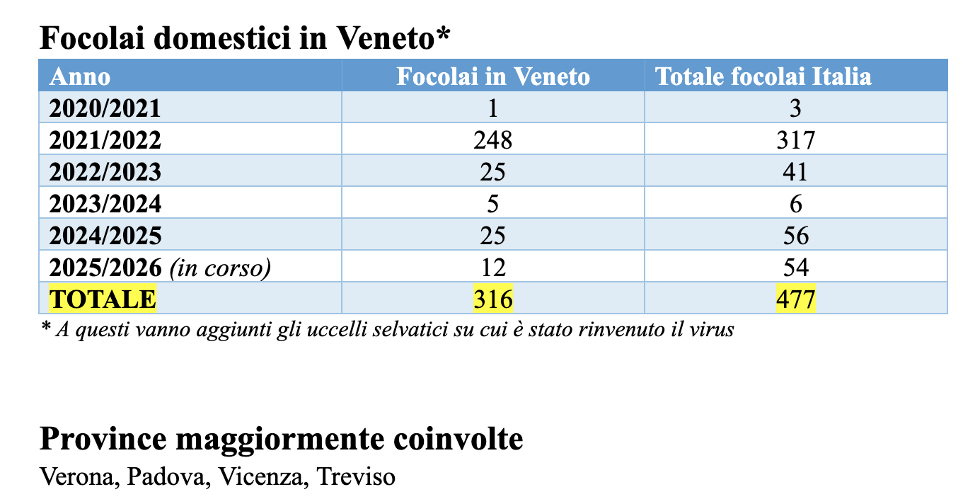 Secondo l’Istituto Zooprofilattico Sperimentale delle Venezie (IZSVE), il vaccino si è dimostrato estremamente efficace e rappresenta uno strumento essenziale per una regione come il Veneto, situata lungo le principali rotte migratorie degli uccelli selvatici, considerati il principale veicolo di introduzione del virus.