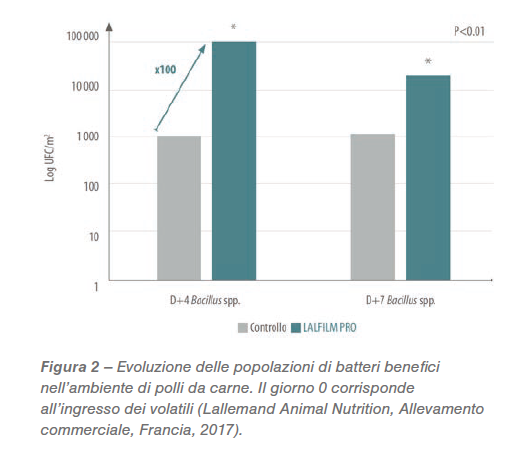 - È stato dimostrato che l’applicazione di LALFILM PRO porta allo sviluppo di un biofilm microbico positivo (aumento significativo delle popolazioni di Bacillus spp.) (Figura 2).